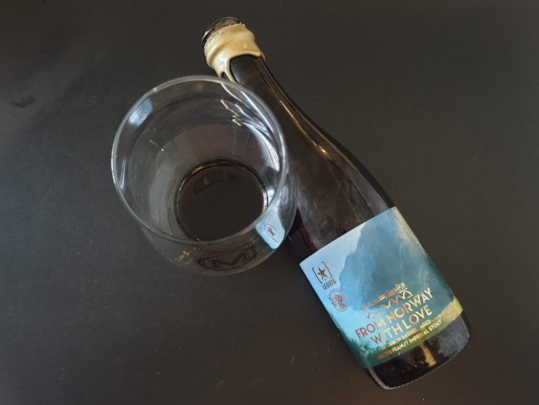 From Norway with Love is a dense, high-ABV bourbon barrel-aged imperial stout from Lervig Rackhouse and Amundsen, built around vanilla, and roast, with a well-tamed savoury delivery.